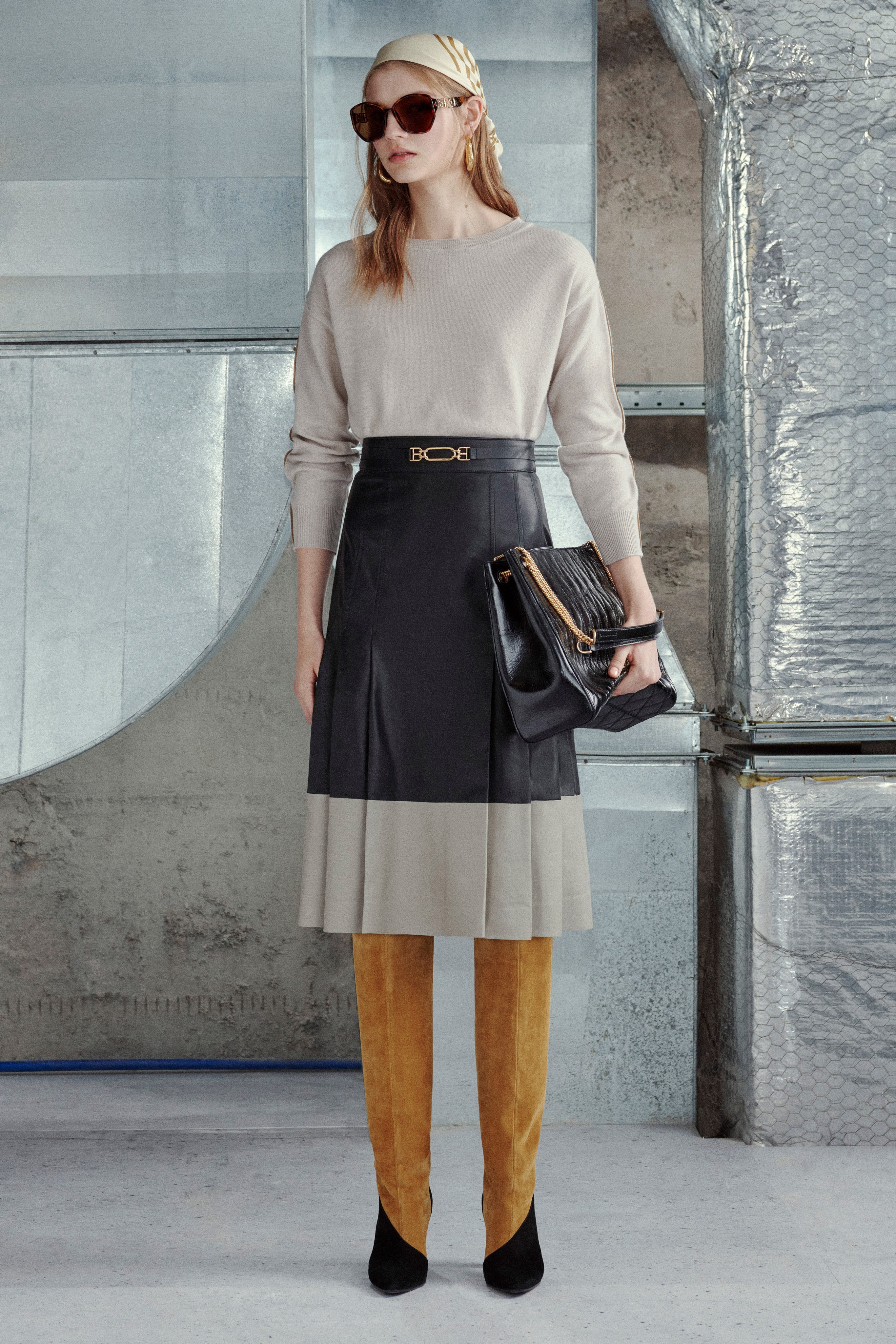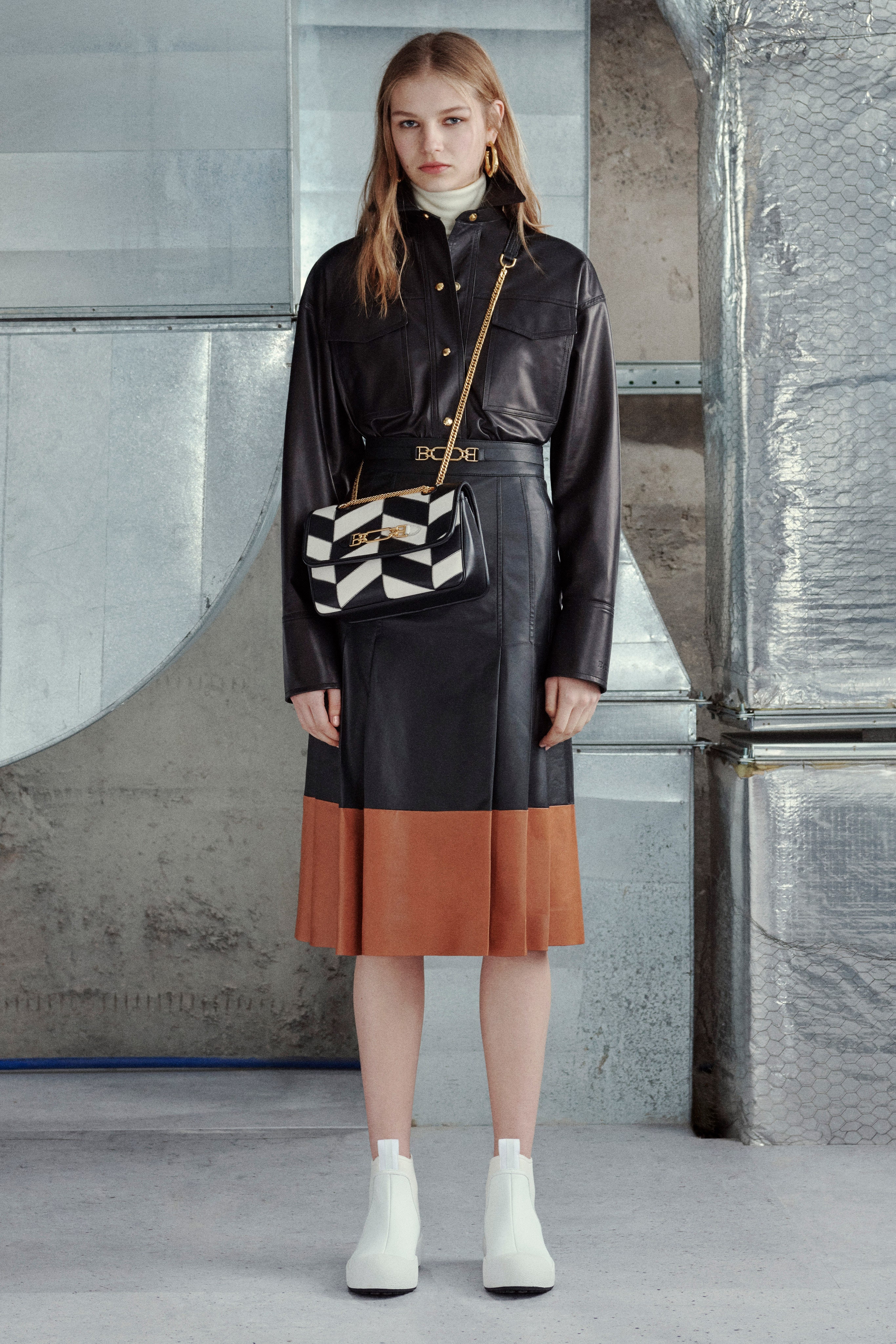 Bally has moved back to its minimalist streamlined fashion. After seasons of coloured packed collection The brand has decided to focus on more classic winter fabrics, such as beige leather with wool-cashmere lining and raw shearling jackets.