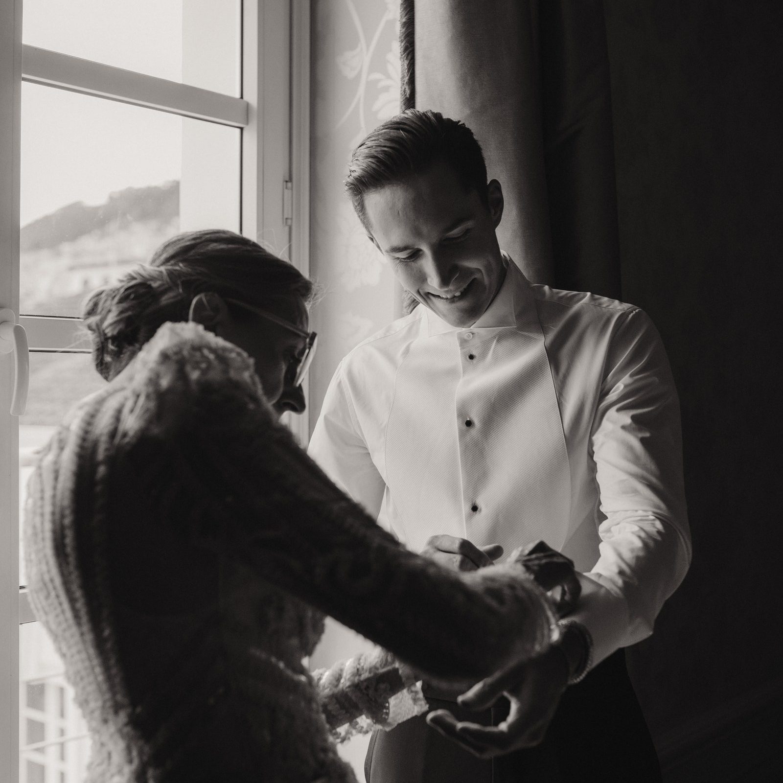 From there, they got back in the car, and Juan blindfolded Jasmine until they pulled up to the airport. Forty minutes later, they landed in Utah and were transferred via helicopter to Amangiri. “Before going to the hotel, we landed in between rocks in the middle of nowhere and sat and had Champagne and a charcuterie board,” says Jasmine. “A photographer hired to capture the moment disguised herself as a hotel staff member, and she told us to check out the lookout point after we were finished with our Champagne. Once we walked up there, I looked down on the ground, and [written there was], ‘Will you marry me?’ I was in complete shock. It was the sweetest, most thoughtful proposal that I could have ever imagined.”