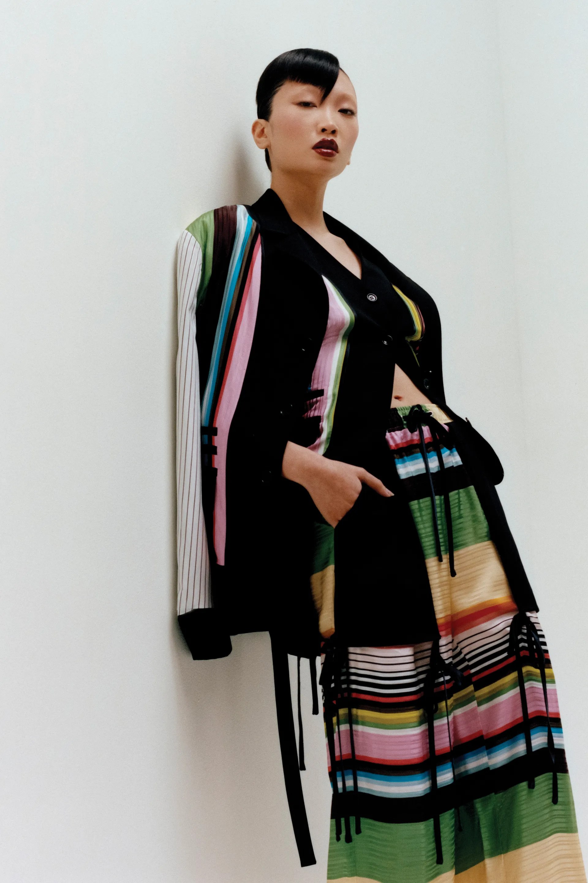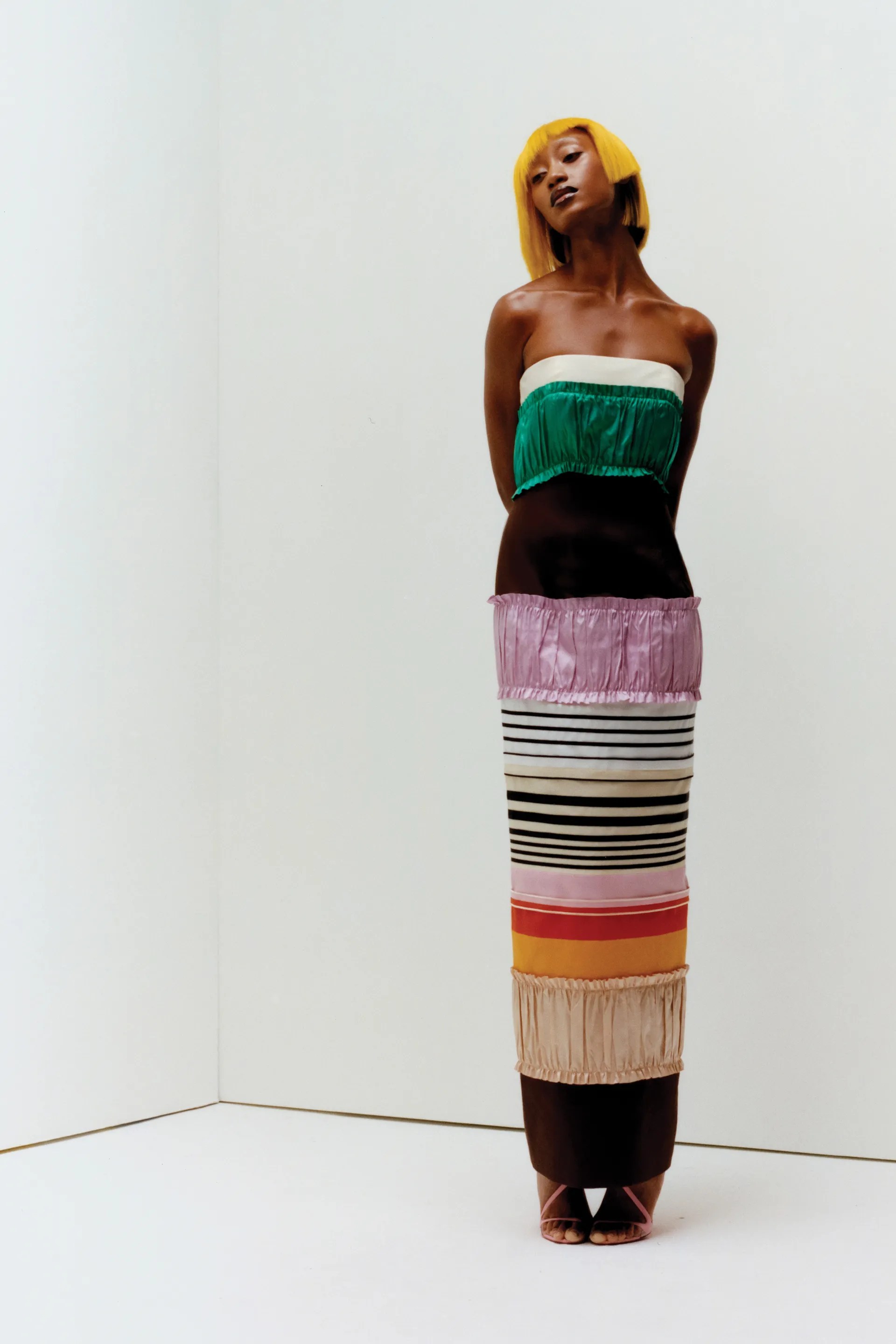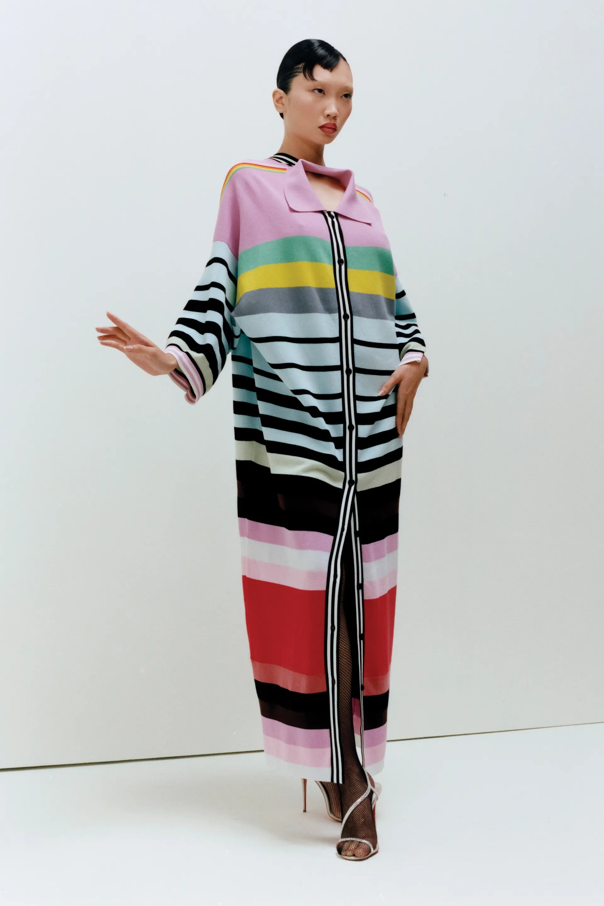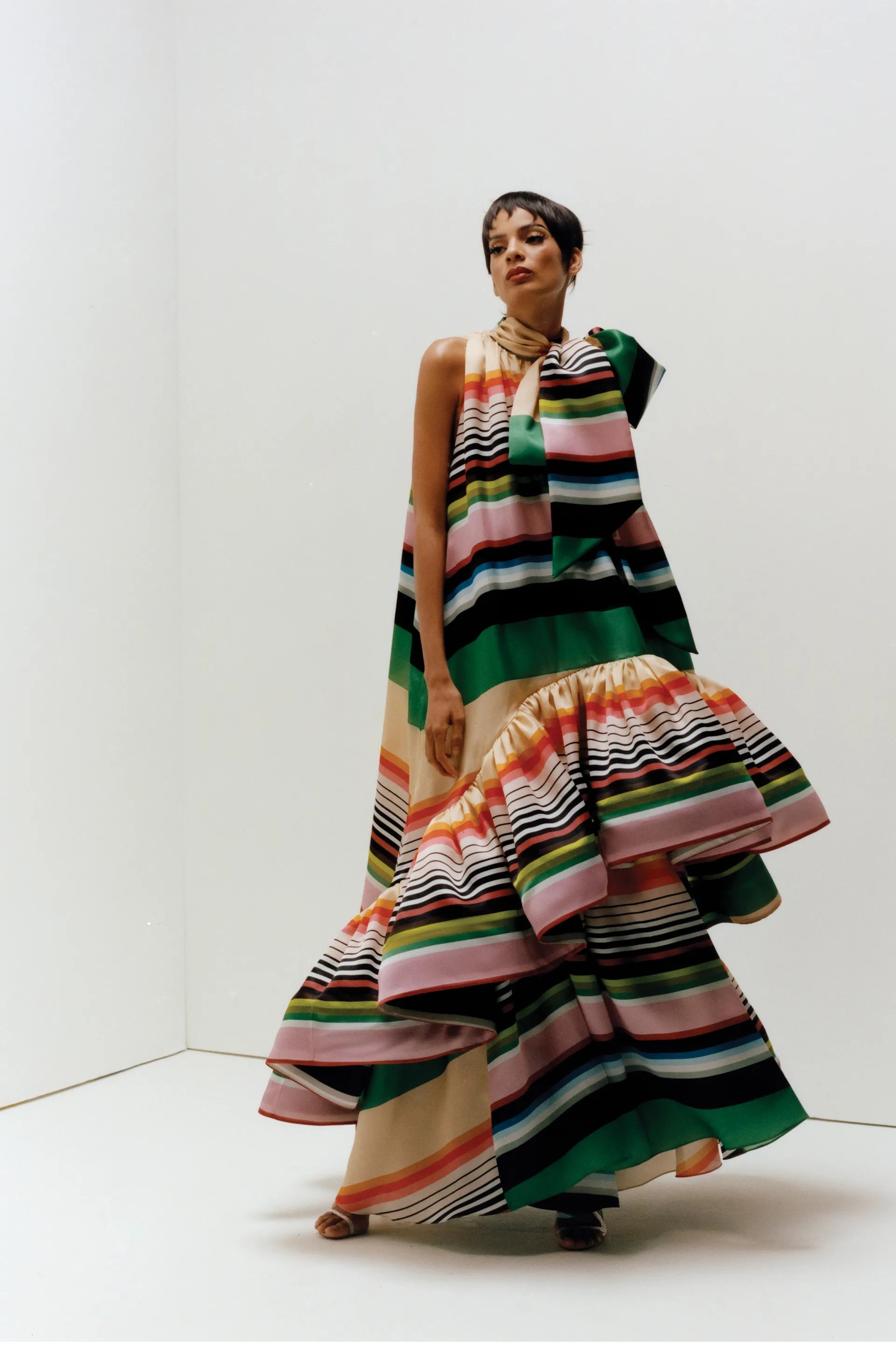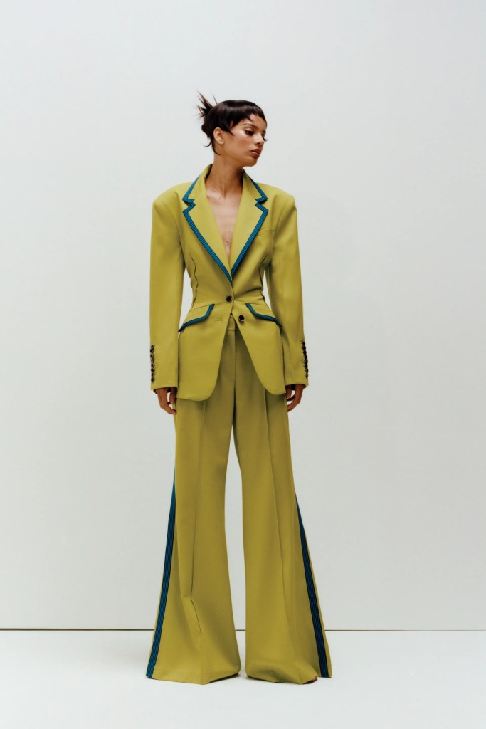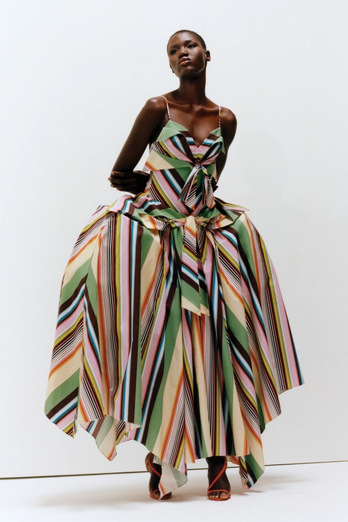 Now one of my favourite looks had to be the stripe deconstructed shirt where the hole where you usually put your head is in front. It’s chic, gorgeous and not something you see often. It’s something I would definitely wear, I love stripes and I love a pop of colour. Christopher John Rogers always delivers when it come comes pops of colour and stripes.