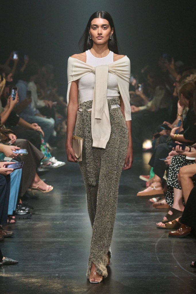 This season, a trend has taken centre stage, capturing the hearts of fashion enthusiasts and making a bold statement on runways worldwide – the resurgence of high-waisted trousers. From classic elegance to modern sophistication, these waist-defining bottoms have become the must-have staple for the stylish and the chic. Ralph Lauren and Phillip Lim graced us with impeccable classic tailoring, showcasing a mastery of timeless design. Meanwhile, Lemaire and Loewe transported us back to the allure of the 70s, offering a captivating journey into nostalgia.