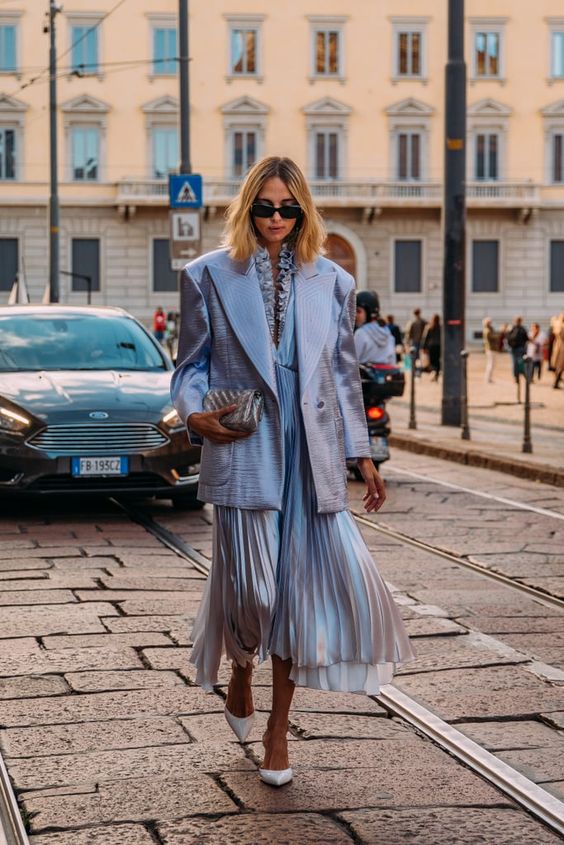 Styling metallics is a breeze: pair a metallic top with jeans for daytime chic or opt for a metallic dress for a night out. The best part? Metallics are versatile, making them perfect for any occasion. With their bold statement and fearless attitude, metallics let you shine bright without saying a word. So, why not add a little sparkle to your street style and stand out from the crowd?
