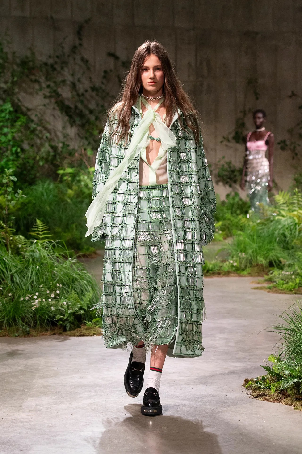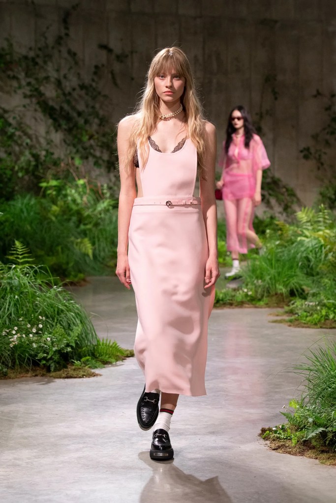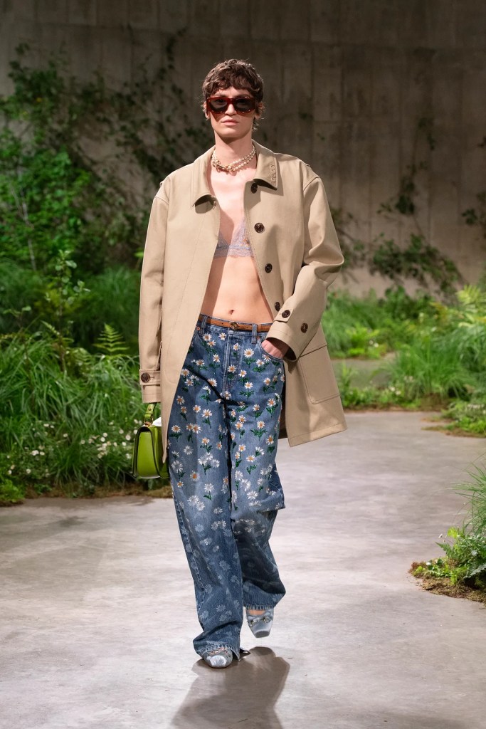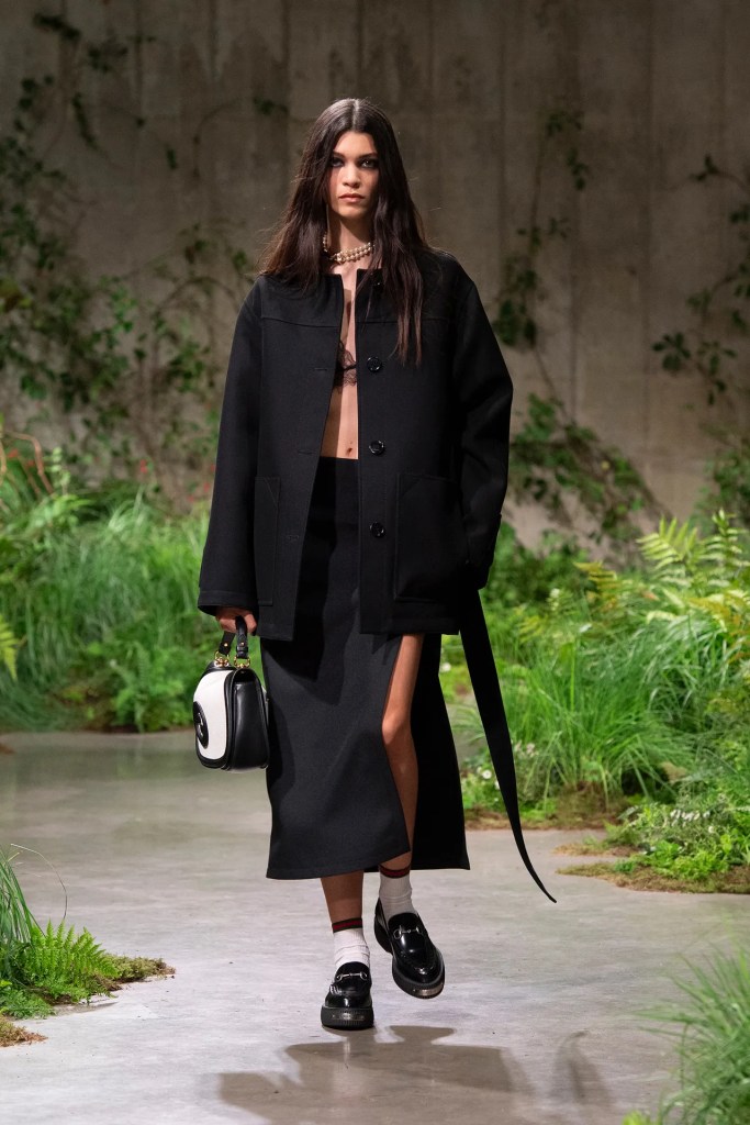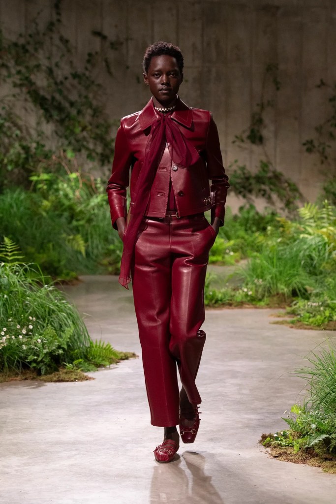 The show itself was a celebration of creativity and innovation, reflecting Gucci’s evolution under De Sarno’s leadership. From tailored outerwear juxtaposed with casual denim to intricately embellished pieces, the collection showcased Gucci’s signature blend of luxury and irreverence. Flat shoes and liberated silhouettes added a contemporary edge, while nods to the brand’s heritage were evident in the iconic horse-bit ballerinas and revamped Blondie bag.