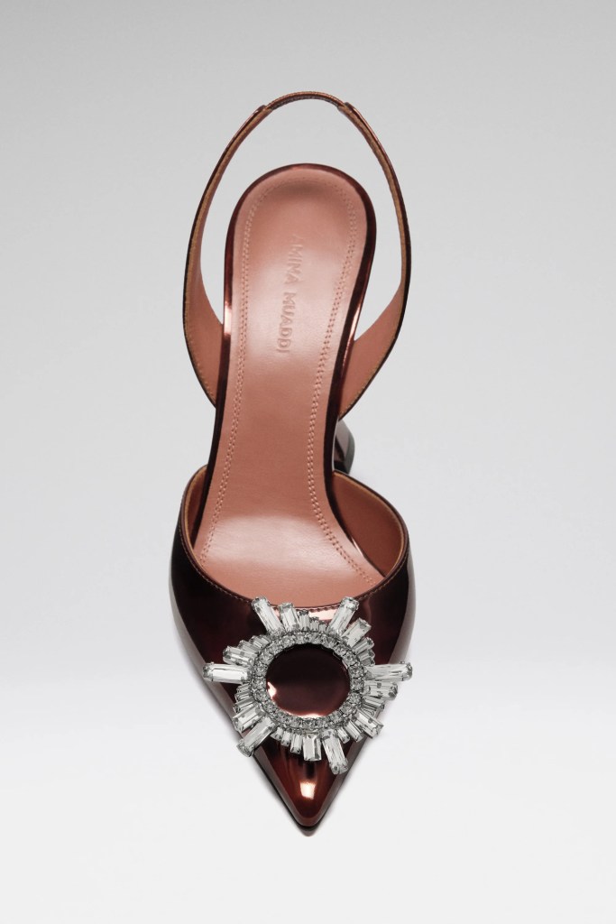Muaddi’s journey into the world of shoes began with her studies at the European Institute of Design in Milan. She honed her skills at some of the industry’s most prestigious fashion houses, including Oscar de la Renta and Alexandre Vauthier. In 2018, she launched her own line, Amina Muaddi, which quickly garnered attention for its distinctive designs and signature flared heel.