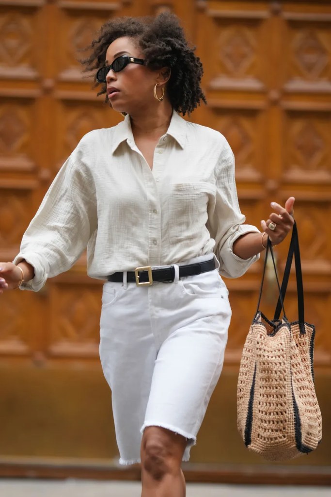 Urban Cool: For a more urban vibe, match a structured raffia crossbody with high-waisted jeans, a graphic tee, and white sneakers. This look strikes the perfect balance between trendy and practical.