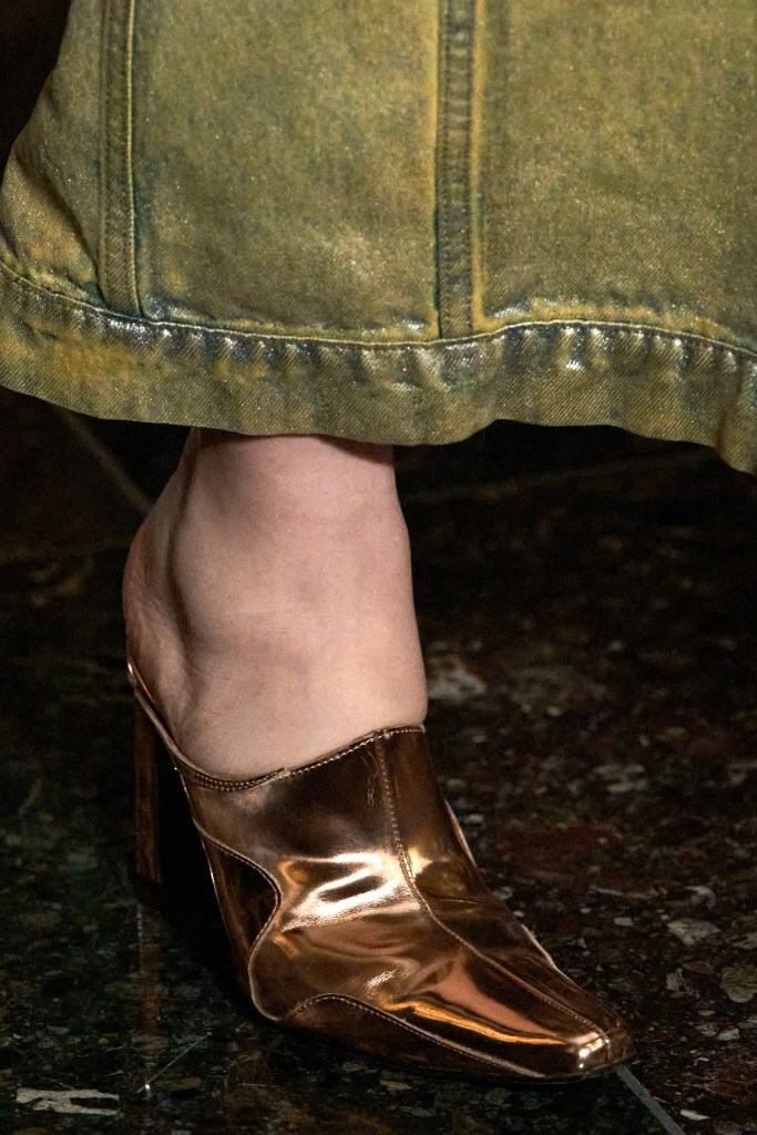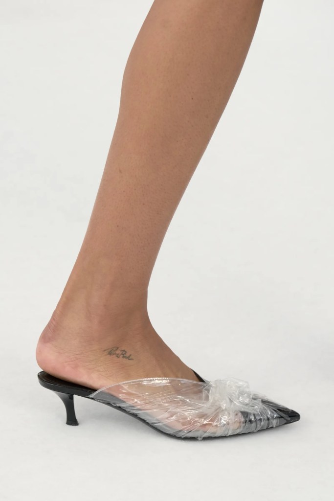 Take inspiration from Balenciaga’s denim babouches for a casual yet trendy vibe. For a more avant-garde approach, Givenchy’s mules wrapped in Saran Wrap make a bold statement. If you’re aiming for a sophisticated yet sexy look, Victoria Beckham’s scholarly oxfords are perfect, and yes, you can still rock them with socks.