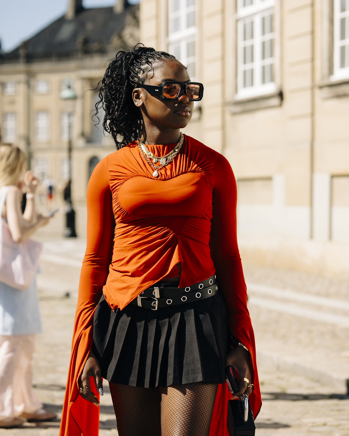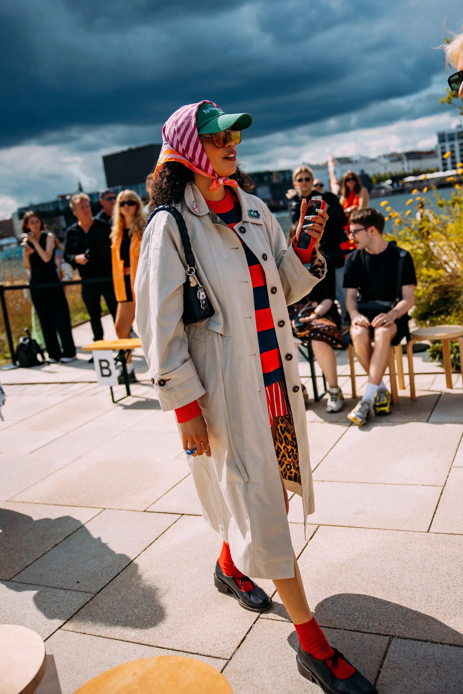 This season, sustainability took the spotlight with attendees favoring eco-friendly brands and vintage finds. Organic cotton, recycled fabrics, and upcycled pieces were prevalent, highlighting the trend toward conscious fashion. Vibrant colors like green, blue, and orange enlivened the typically neutral Scandinavian palette, while monochromatic outfits layered with different textures added depth. Tailoring was sharp yet relaxed, featuring oversized blazers, wide-legged trousers, and structured coats. Accessories made bold statements with chunky jewellery, oversized sunglasses, and avant-garde handbags, complemented by a mix of platform boots and minimalist sneakers.