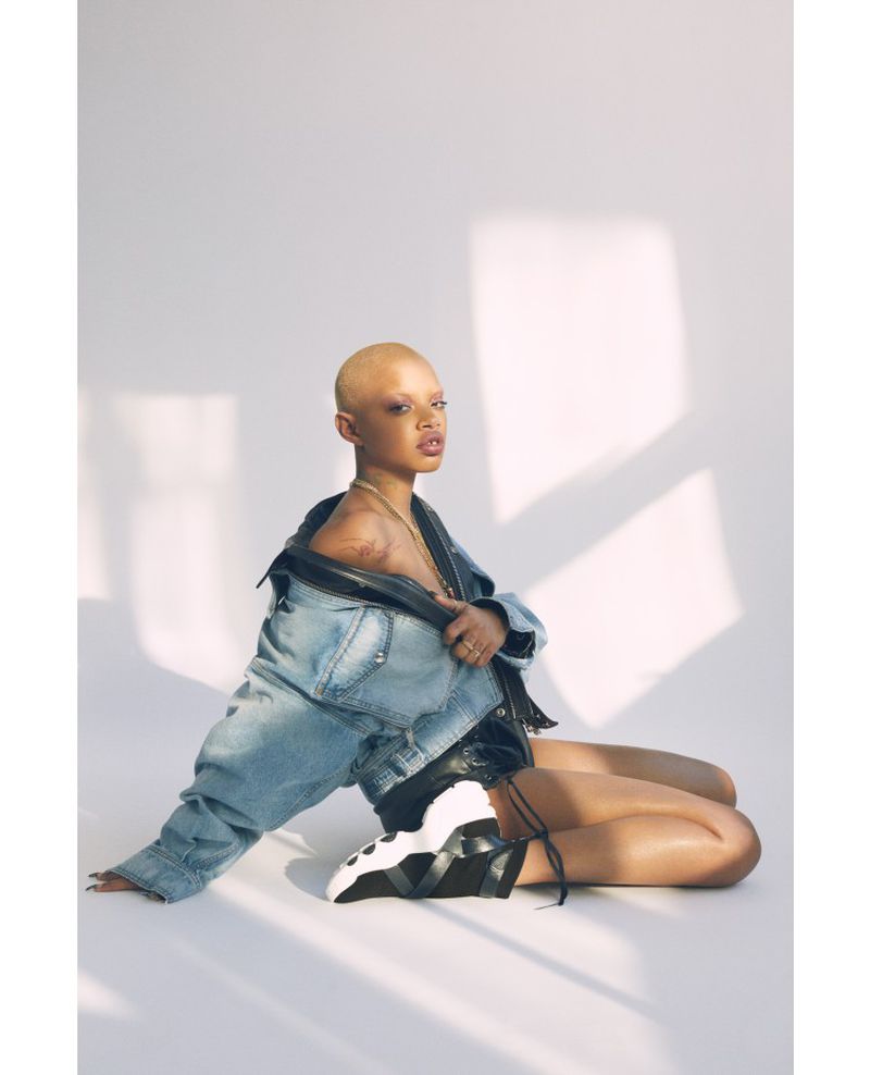 Woods’ rise to fame was meteoric. Her unique beauty and unapologetic attitude resonated in an industry that was beginning to embrace diversity. She quickly caught the attention of Rihanna, becoming one of the standout models for Rihanna’s Fenty Beauty and Fenty x Puma campaigns. Her bald head, tattoos, and edgy style became synonymous with Fenty’s bold, inclusive brand message. Beyond Fenty, Woods has walked the runway for major designers like Marc Jacobs, Miu Miu, and Jeremy Scott, solidifying her place in high fashion.