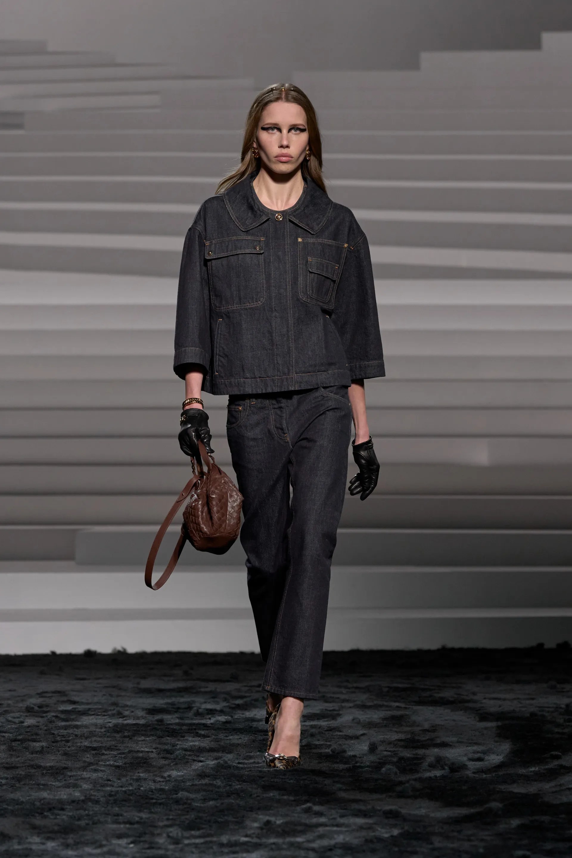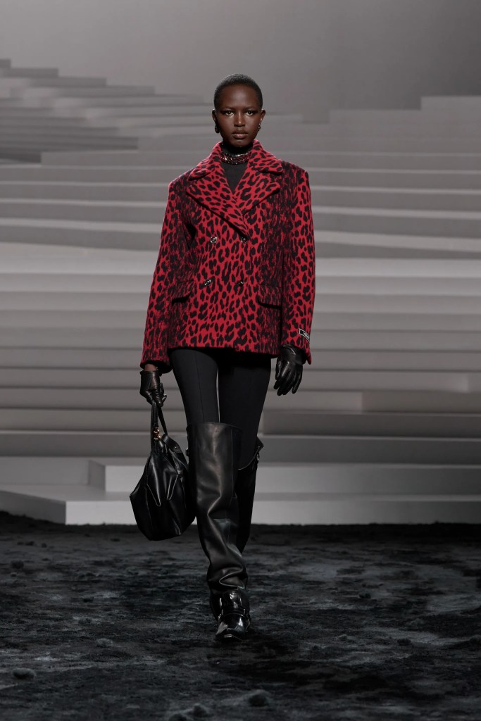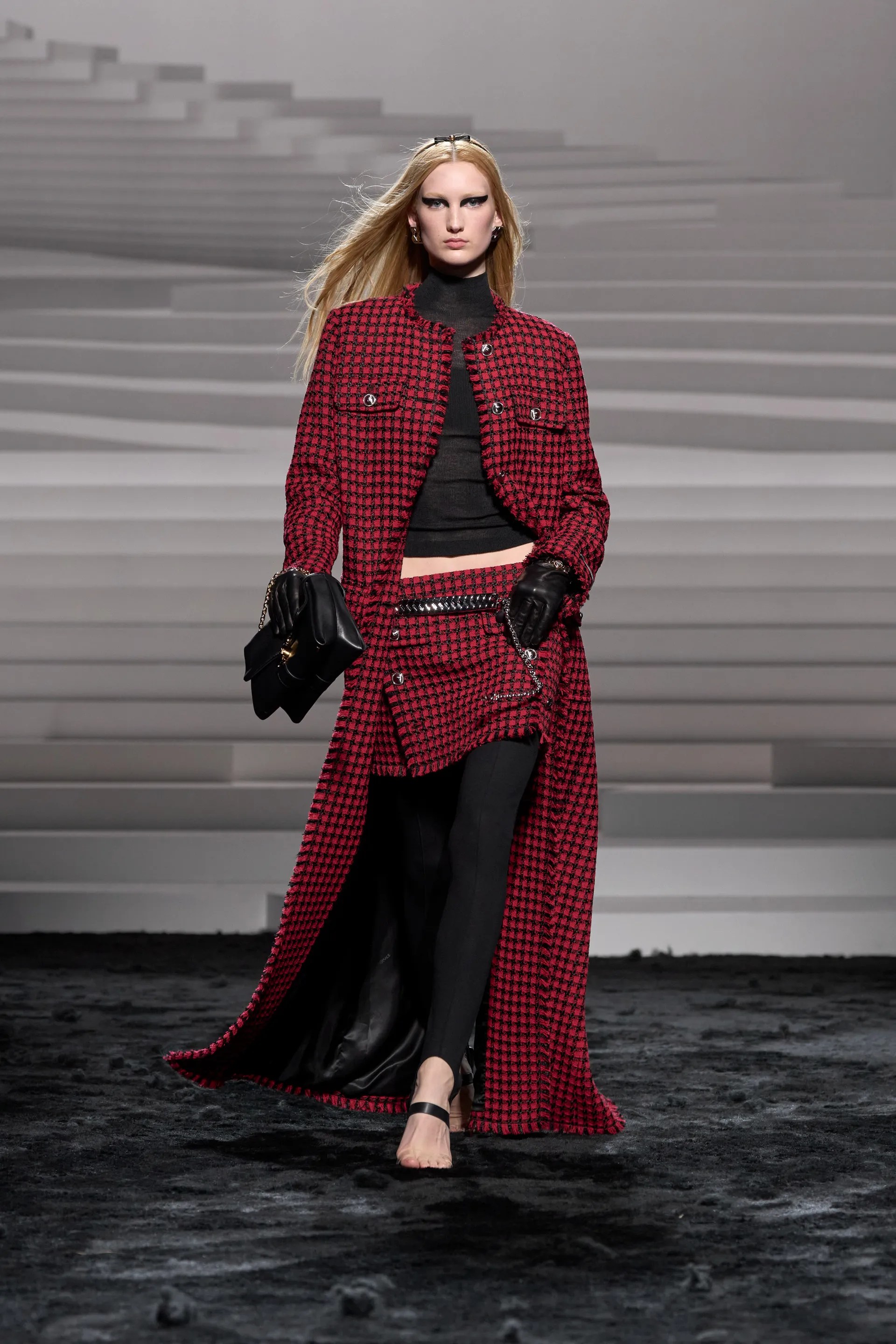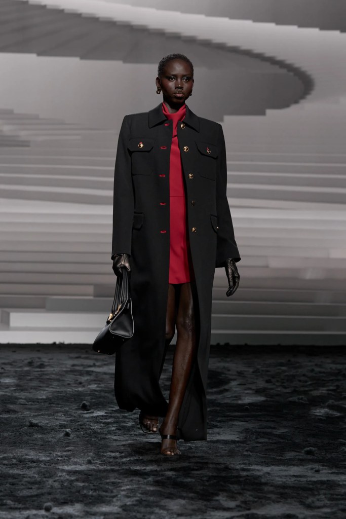 Versace’s Milan Fashion Week show was a bold display of confidence and power. The black shag carpet and white staircase created a striking backdrop as models walked in a figure-eight through the crowd. Despite the ongoing transition with Tapestry’s acquisition of Capri, Donatella Versace’s vision was strong and unmistakable.