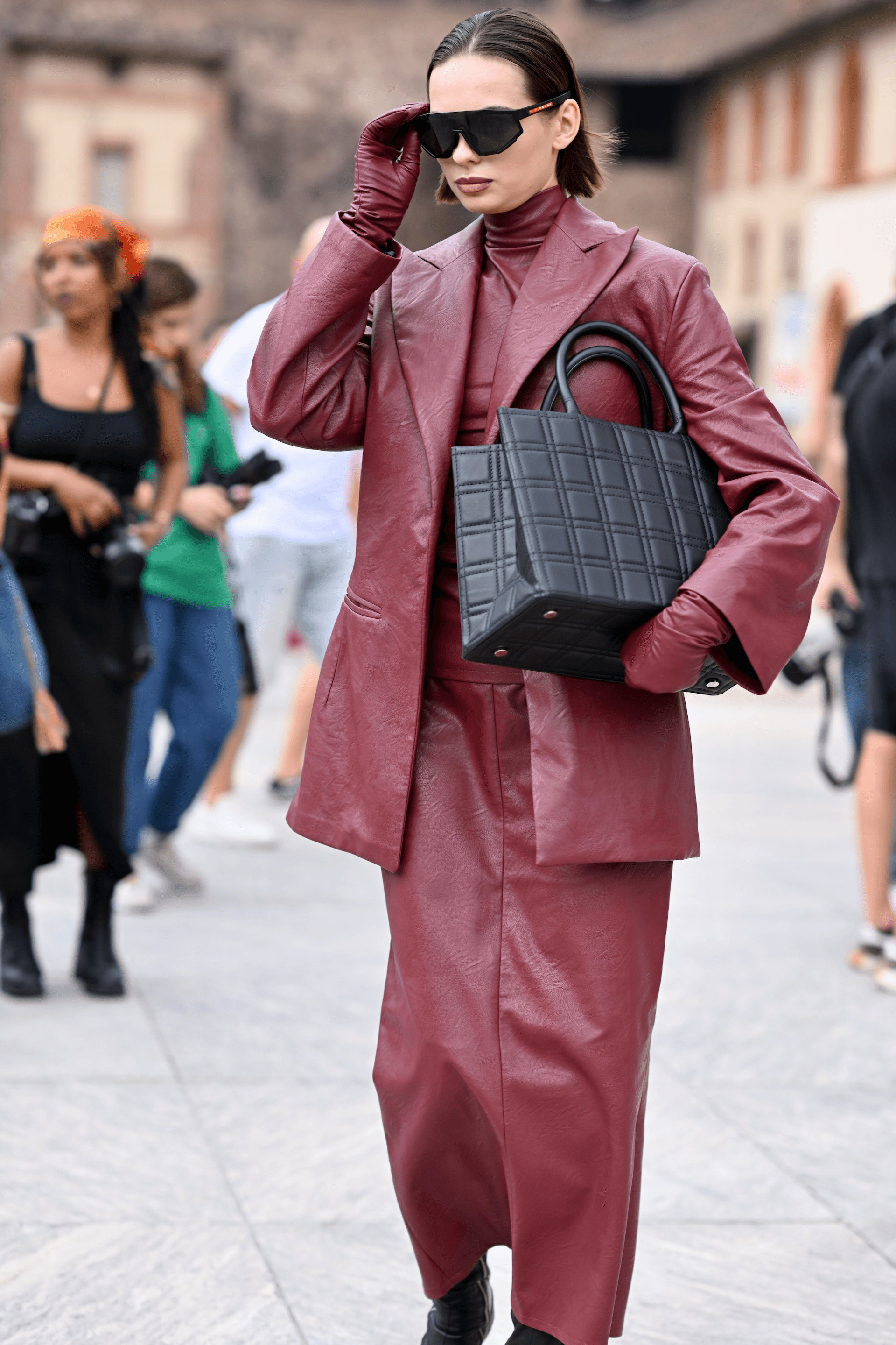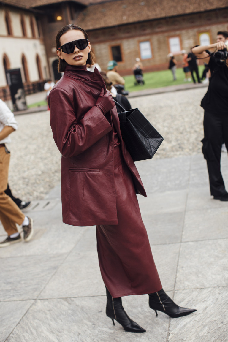 This season, burgundy is taking over the street style scene, offering a rich and sophisticated alternative to the usual neutrals. Whether it’s head-to-toe ensembles or bold statement pieces, this deep wine hue is a must-have for every wardrobe.