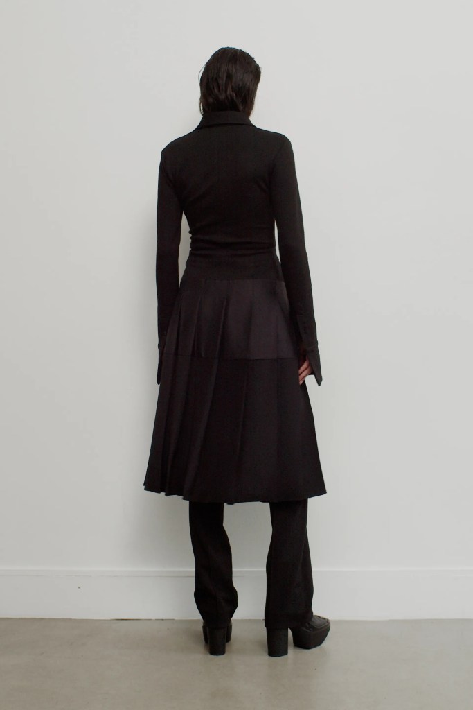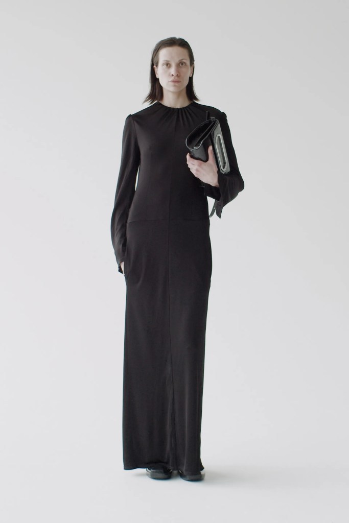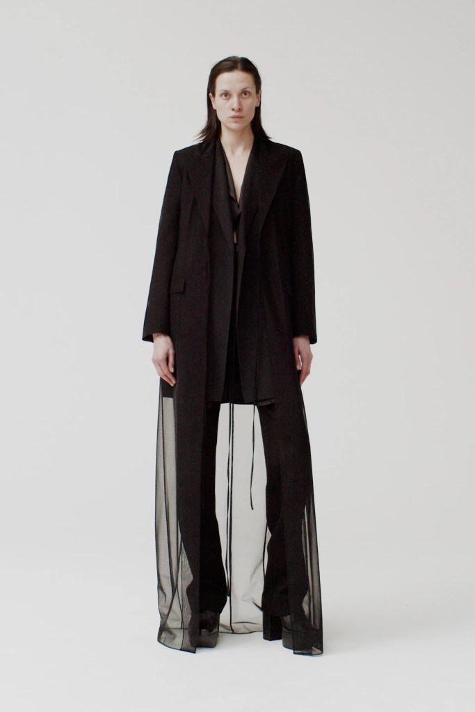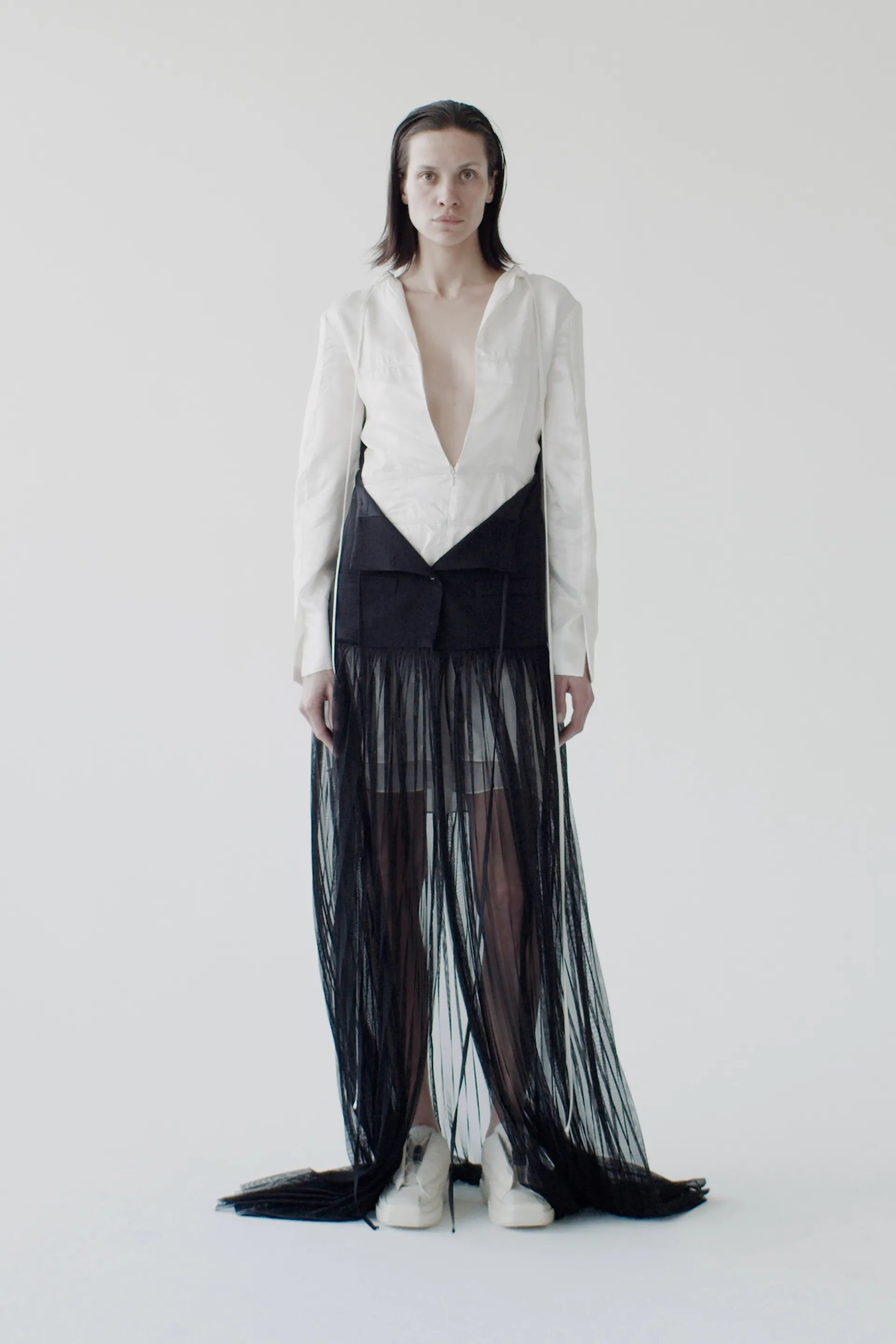 True to his modular dressing concept, Do focused on versatility. Notable pieces included a “Suture” suit with functional sleeve buttons for boardroom power flexing and a silk twill minidress that could be styled two ways.