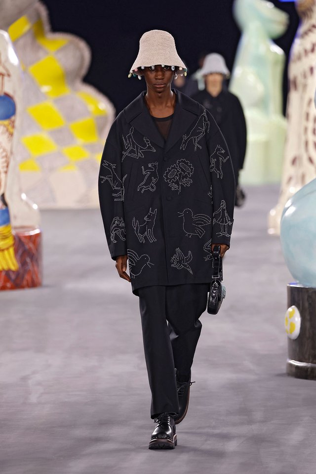 Jones’ ability to merge haute couture with street culture has not only shaped Dior Men’s aesthetic but also influenced the broader fashion landscape. His collections often referenced both the history of the brand and contemporary pop culture, resulting in pieces that were simultaneously timeless and fresh.
