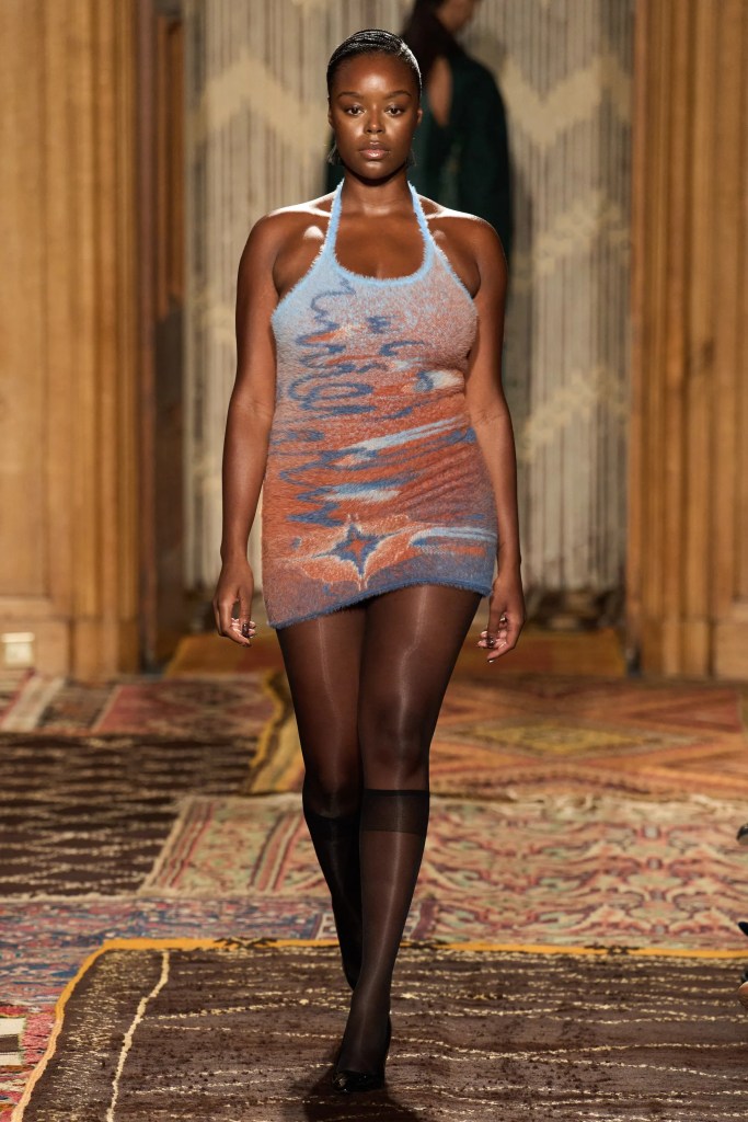 Knotted detailing mimics family bonds, while beaded wigs nod to the iconic beaded curtains found in Nigerian households reimagined with high-fashion flair. Knitwear and textiles feel personal, almost intimate, telling stories through fabric rather than words. There’s a softness to the silhouettes, but it’s grounded in strength and purpose. With each look, Ahluwalia transforms everyday memories into wearable art elevating the ordinary and stitching it into something unforgettable.