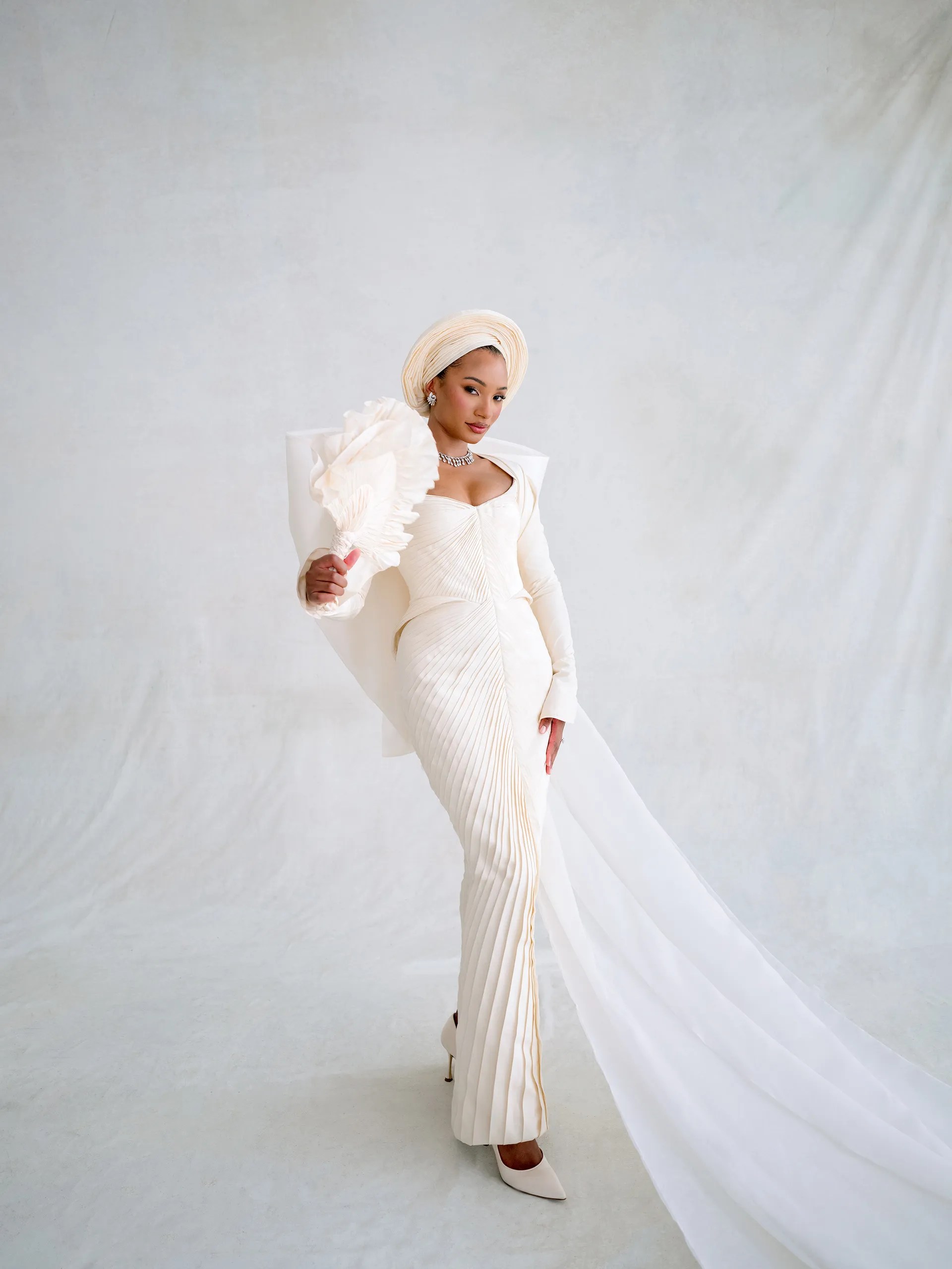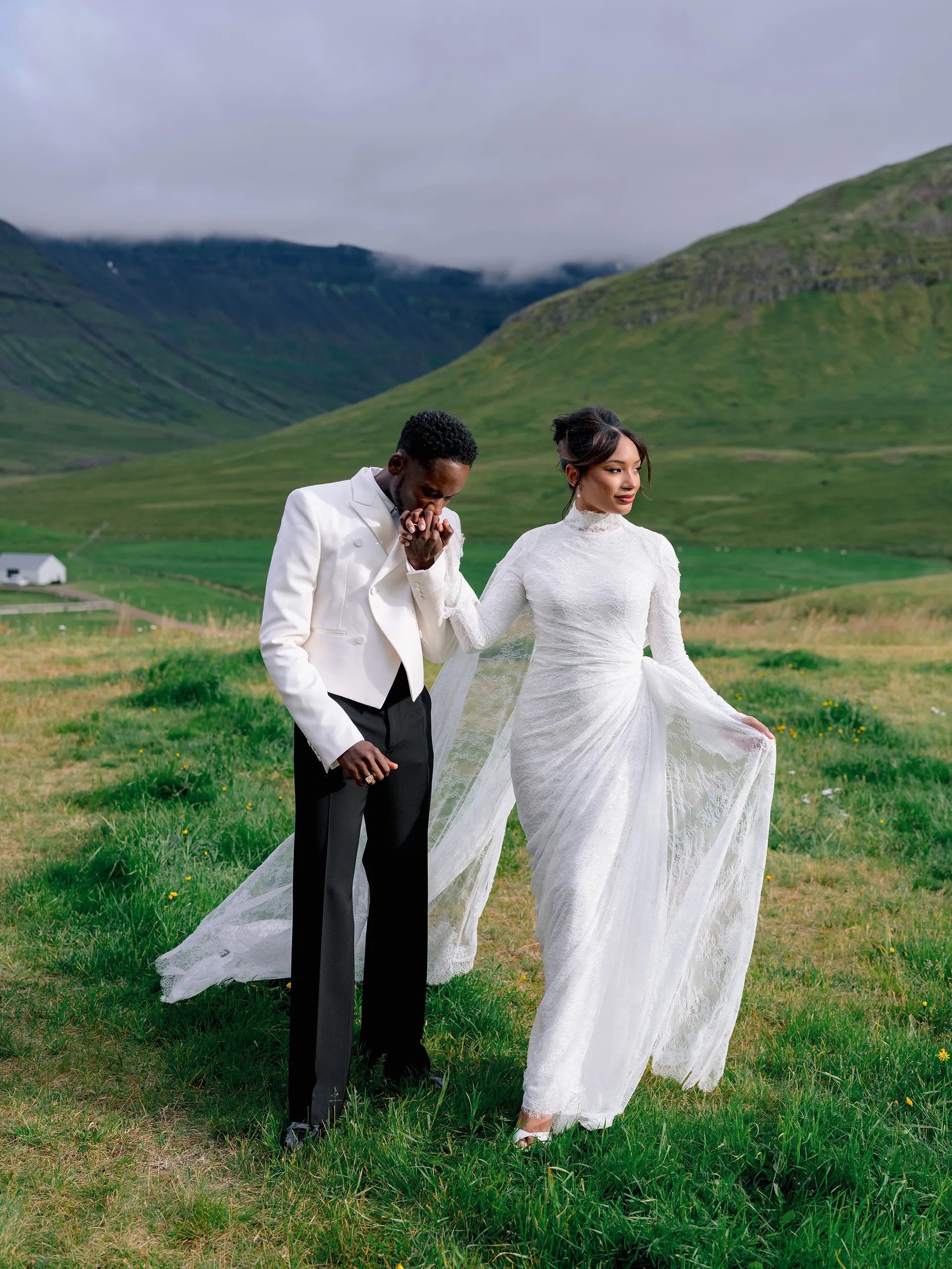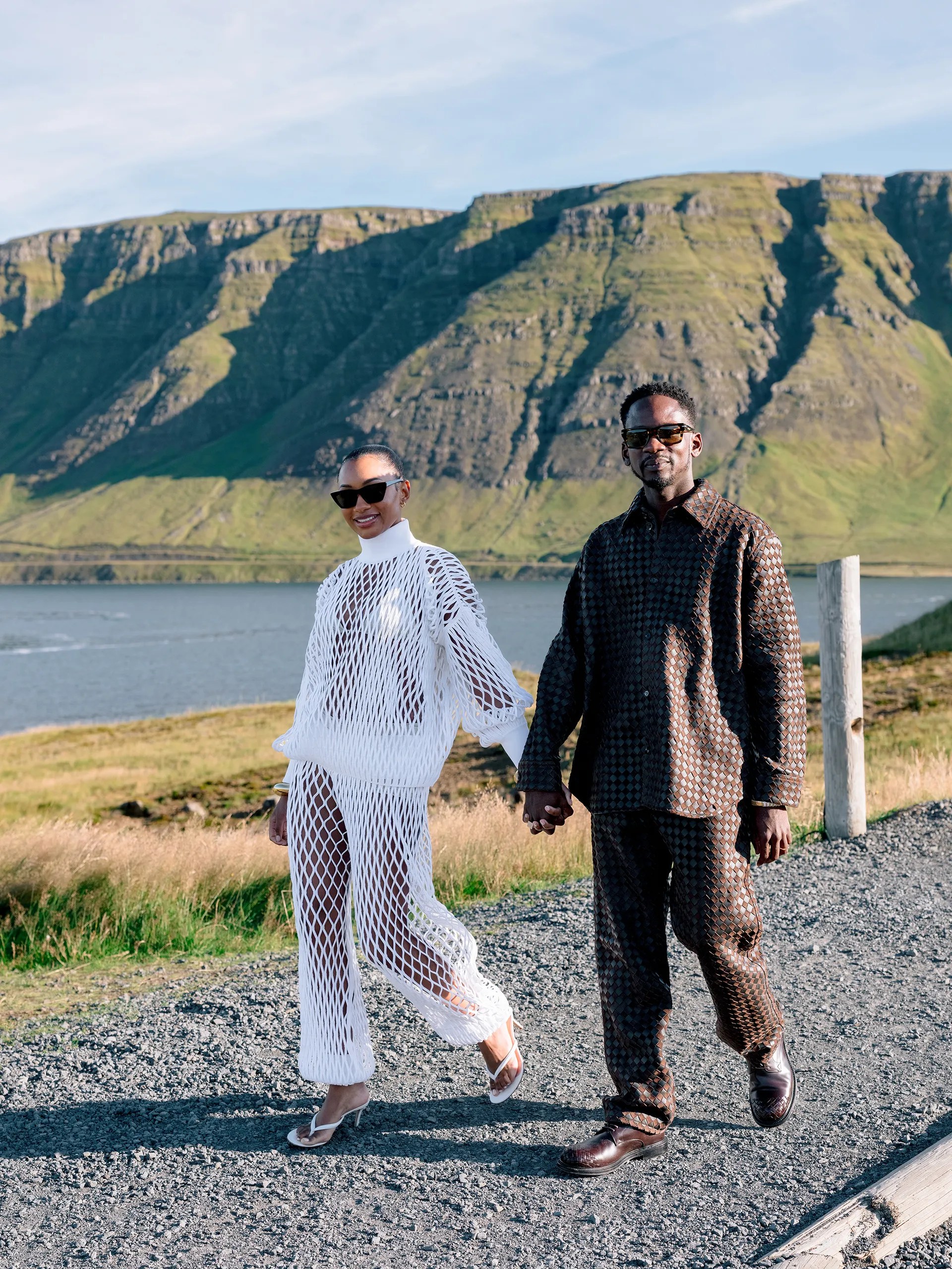 And then came the finale in Iceland. Against the dramatic backdrop of Reykjavik’s Hallgrímskirkja, Temi floated down the aisle in a Fendi Haute Couture gown, inspired by Audrey Hepburn. Think timeless romance with a side of cinematic drama.
