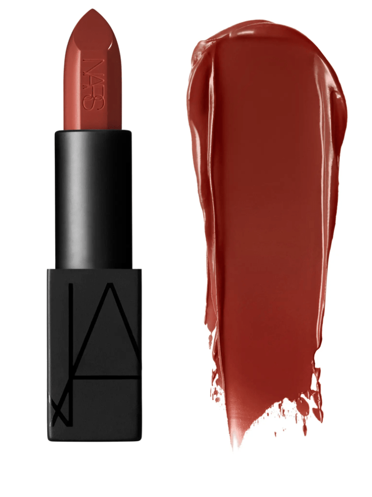 NARS Audacious Lipstick in Mona (brick-red perfection).