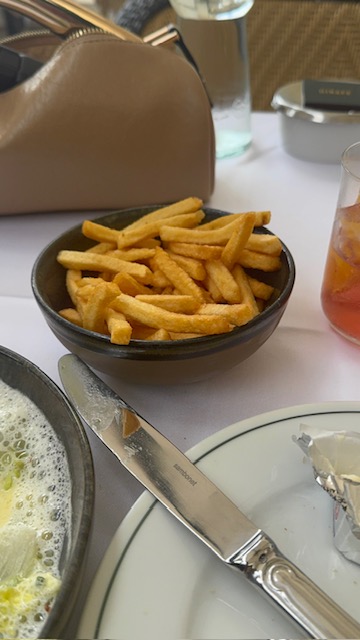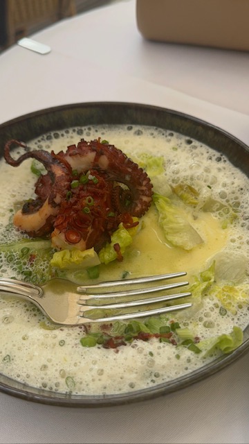 For dinner, I had the grilled octopus with spring onion cream and fries, paired with a Lillet Rosé cocktail. The octopus was tender, buttery, and perfectly balanced by the creamy sauce. The service was impeccable attentive, polite, and refreshingly warm (yes, even for Paris).
