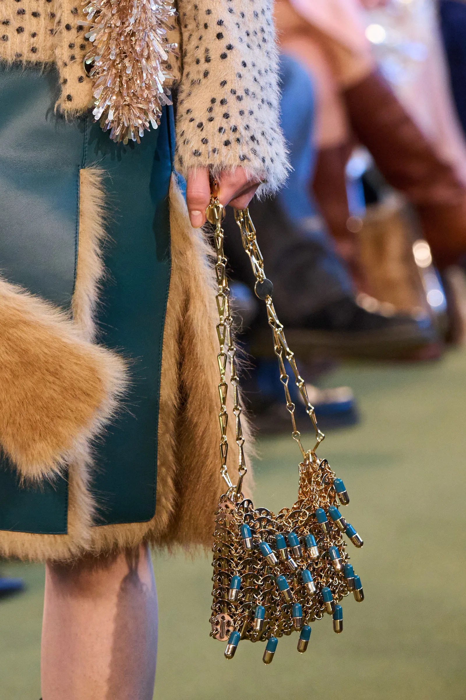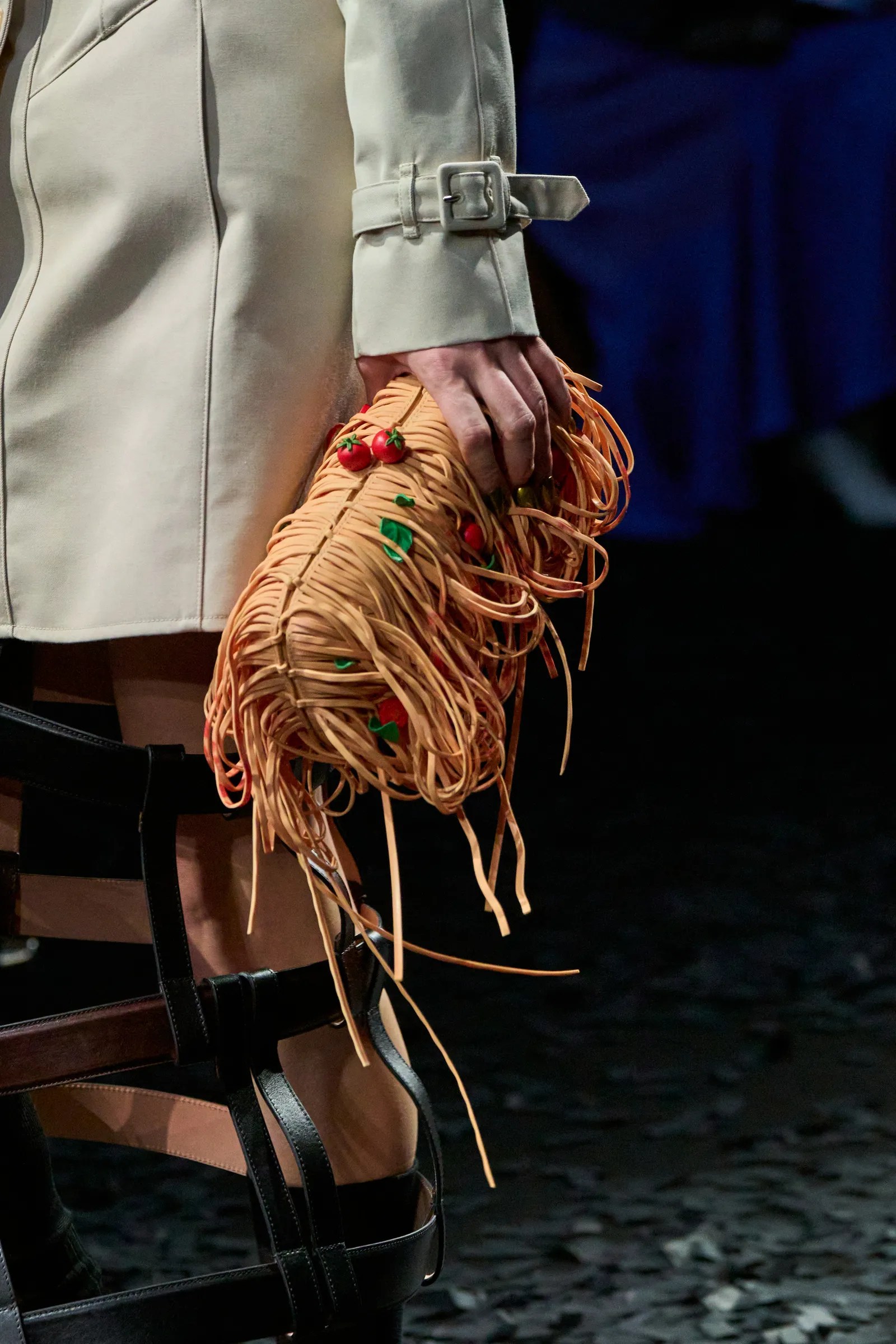 Who said bags have to be boring? This season, clutches are taking on a life of their own—literally. Think Simone Rocha’s turtle bag (yes, it’s as whimsical as it sounds), Rabanne’s tiny chainmail number dotted with pills, or Moschino’s spaghetti-inspired madness.