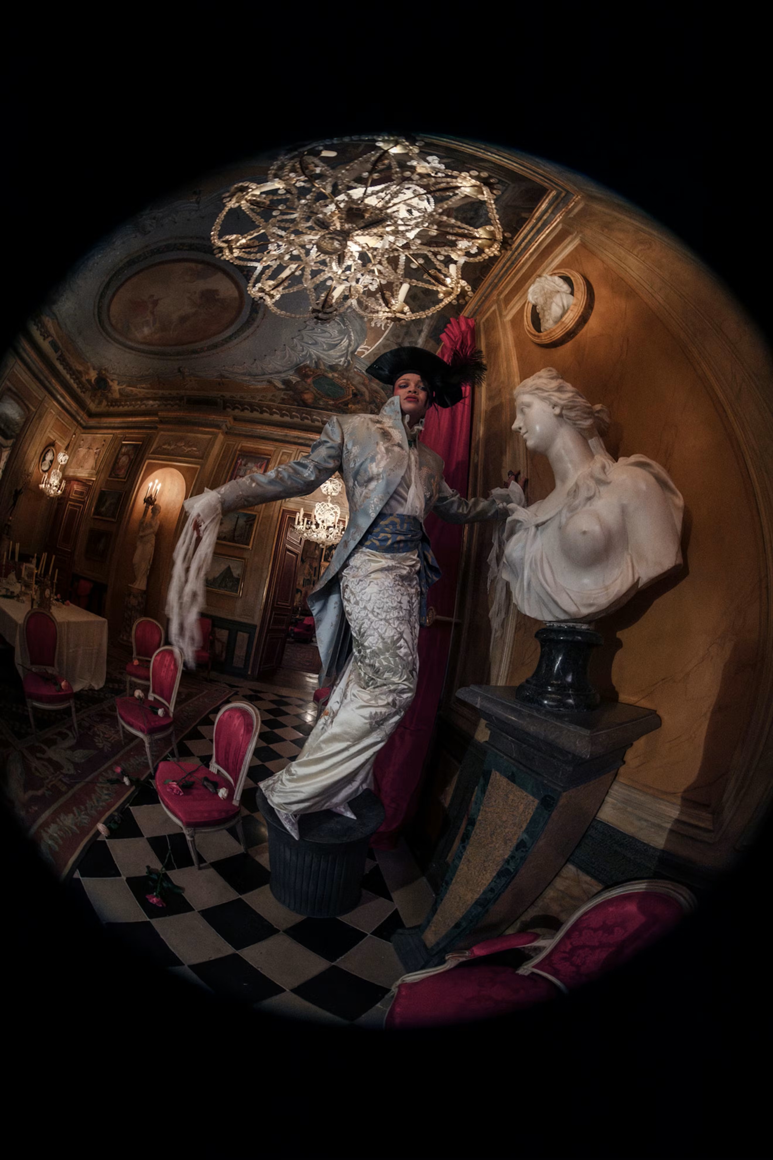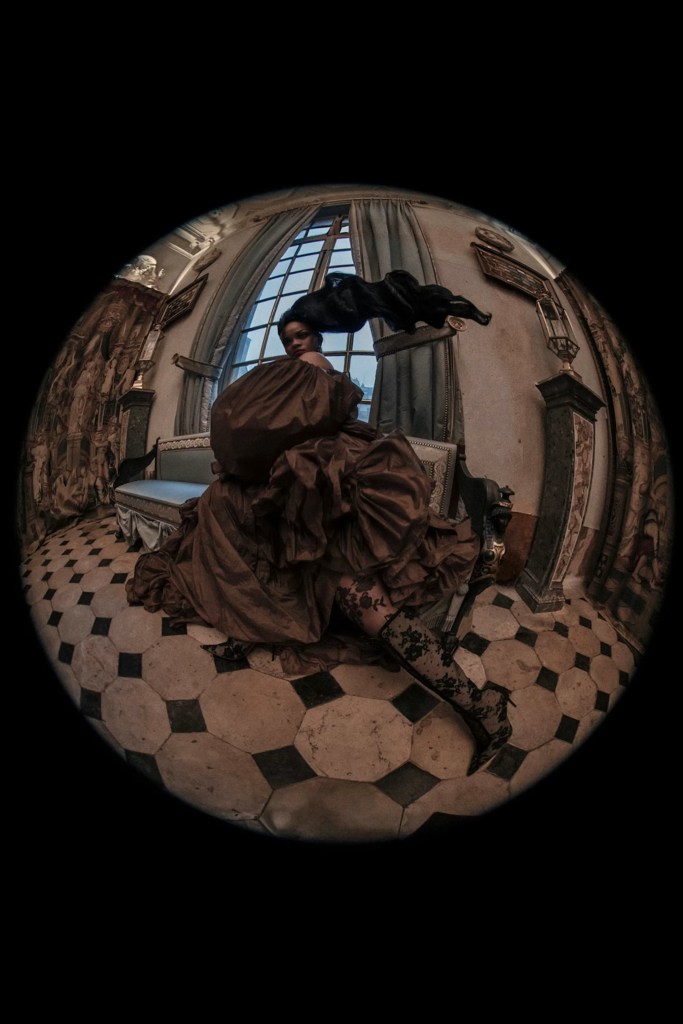 The Pop Issue images, photographed by Tim Walker, showcase Rihanna in dramatic couture styling while introducing baby Rocki in her first magazine cover appearance.