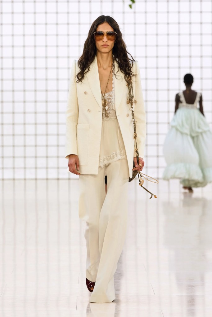 Chemena Kamali’s second runway show for Chloé confirms what fashion insiders suspected she gets the brand. Her Spring/Summer 2025 collection served up nostalgia with just the right amount of attitude. Think: fluttery floral chiffon dresses catching the breeze, high-waisted flared jeans à la early-2000s Philo, and cheeky flamingo-pink swimsuits giving major Stella McCartney energy.
